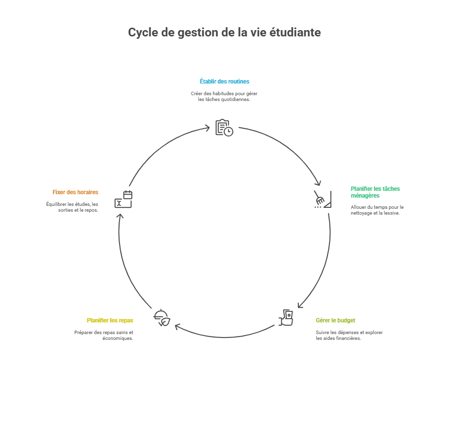 Budget : Gérer un budget personnel est un apprentissage majeur. Au début, certains comme Erell se sont laissés bercer par leurs économies puis ont dû « rectifier le tir » en surveillant davantage les prix. D’autres ont trouvé des astuces : Laura tient un carnet de comptes où elle note toutes ses dépenses quotidiennes. Elle explique : « grâce à ce registre, j’analyse et j’ajuste mes dépenses ». Une application smartphone de gestion de budget étudiant peut aussi aider. Pensez également aux aides financières : bourses, APL, tarifs étudiants (transports, culture, sports) qui existent dans chaque académie ou université.